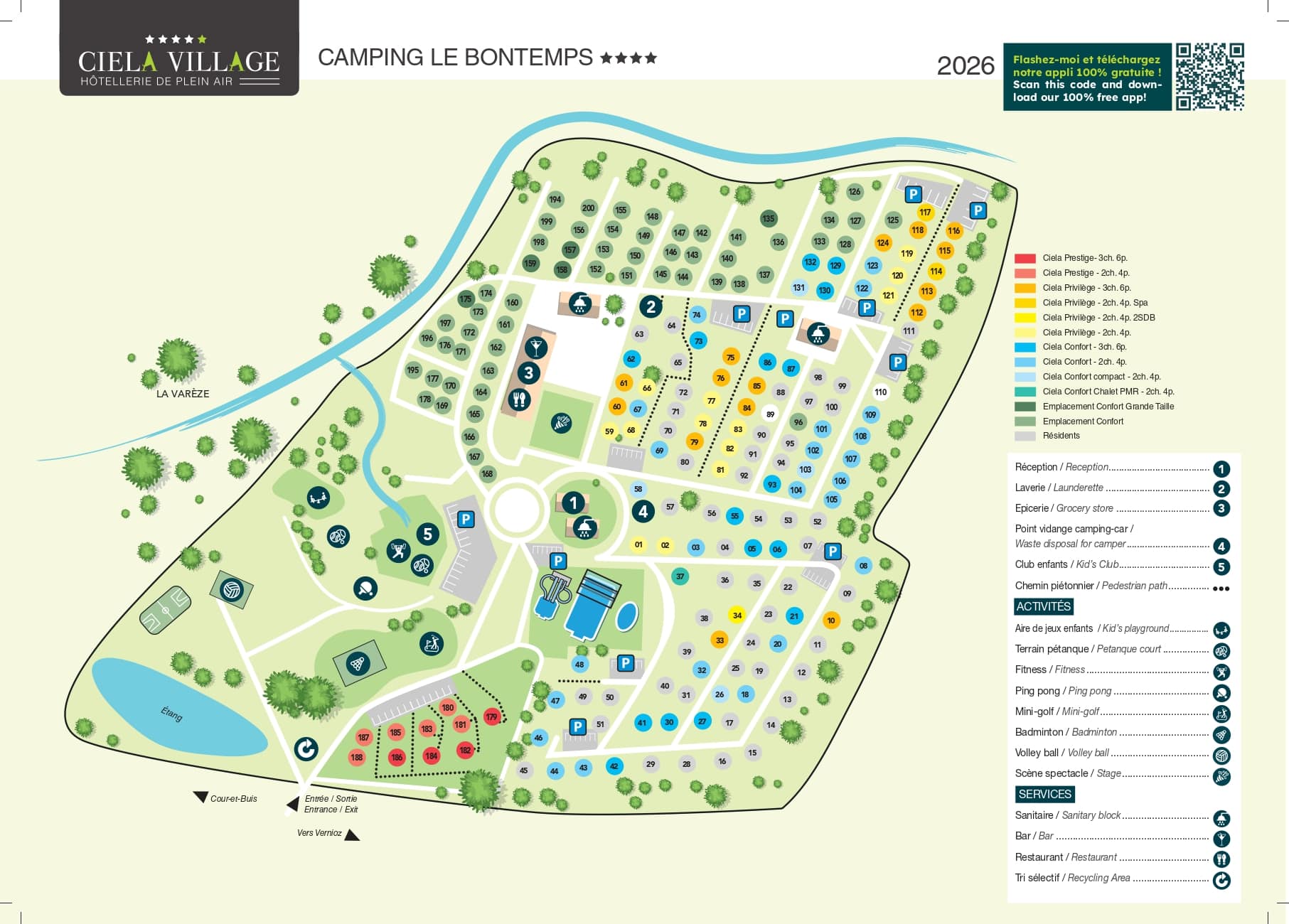 Camping Ciela Village Le Bontemps ligt in Vernioz in Isère, in het hart van de prachtige regio Rhône-Alpes, en is een uitgelezen bestemming voor natuurliefhebbers en gezinnen op zoek naar avontuur.